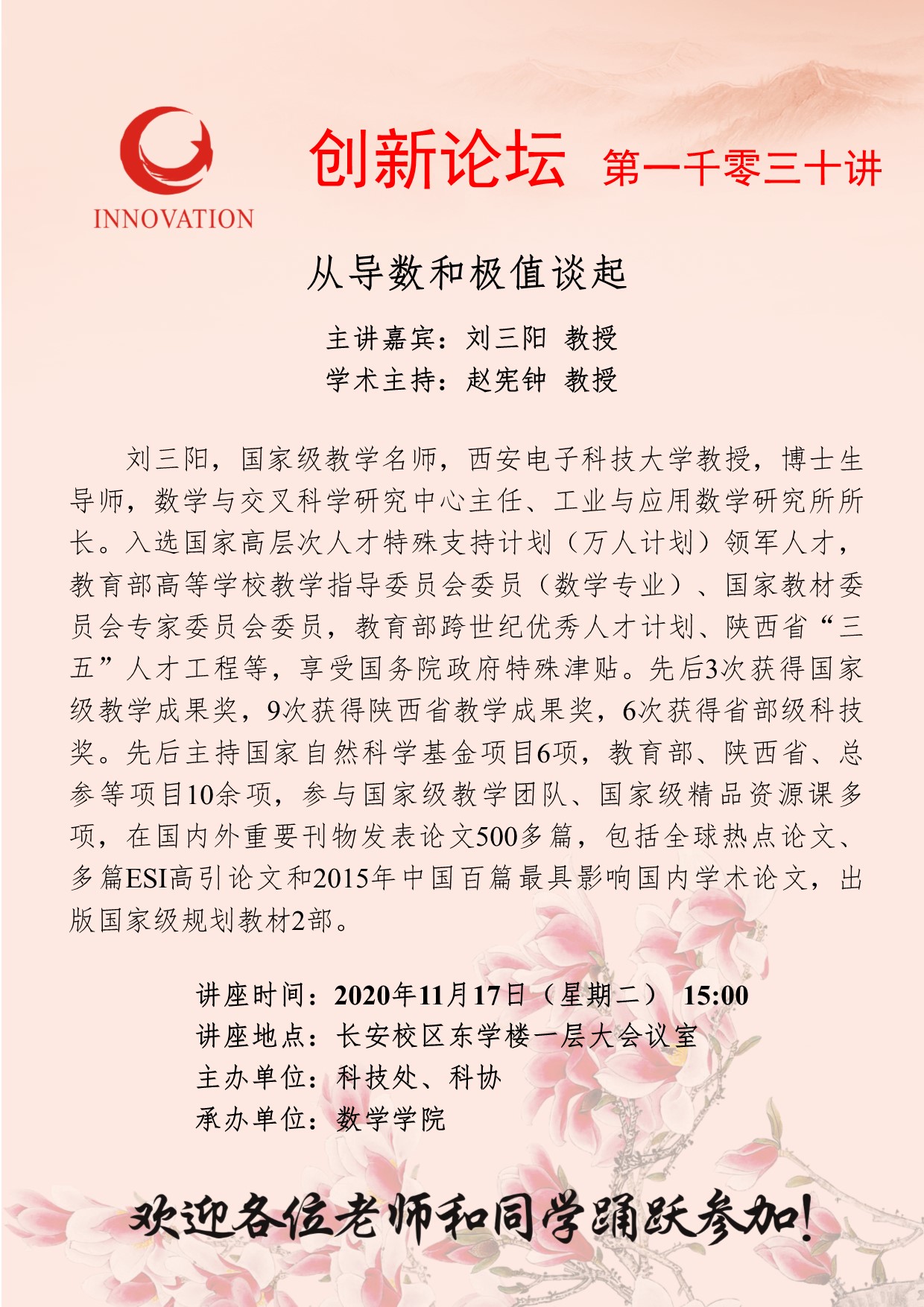 西北大学创新论坛第一千零三十讲:从导数和极值谈起