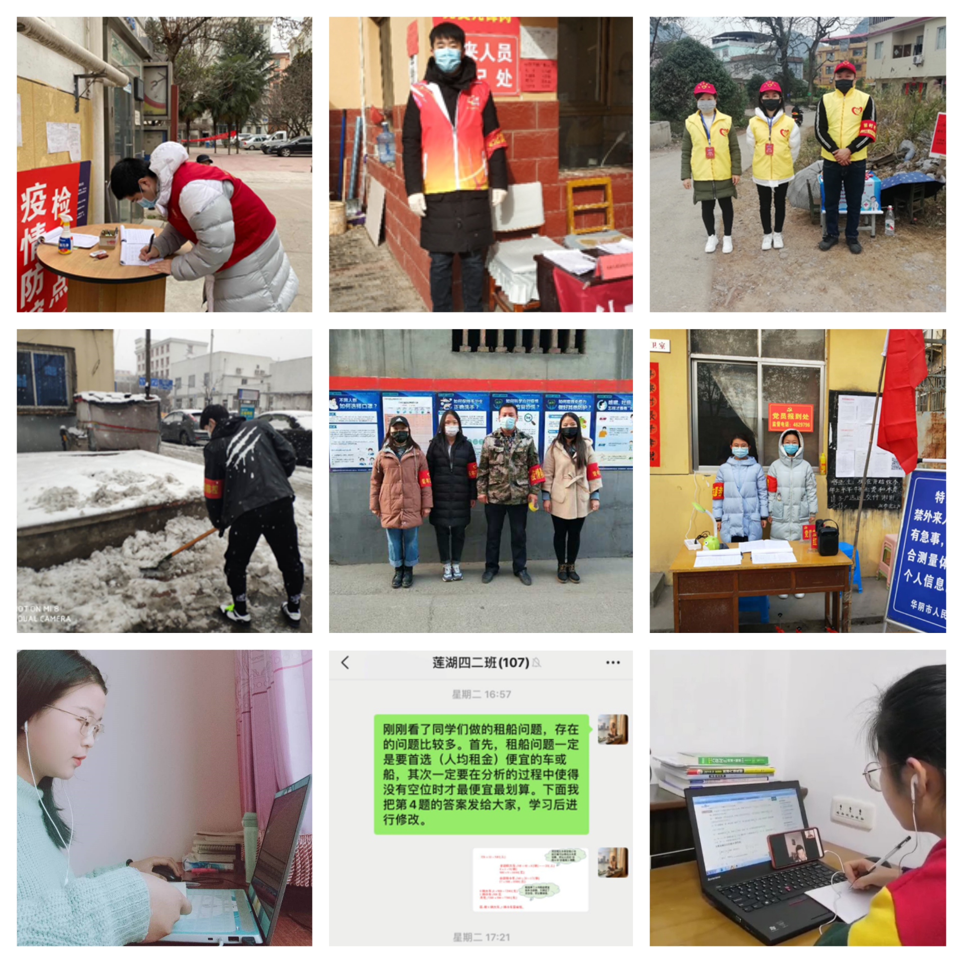 最美逆行,数院学子贡献青春力量,高扬战“疫”红旗。学生干部成为疫情联防联控工作的重要力量,他们积极配合学院开展班级学生的日常联系、信息填报、举办党日团日活动等工作。牛泽颖、熊帮婕、雷梁宸、王圣涵、厉璇、孙泳涵、周孙源、陈晗曦、杜婧、夏芳、刘玲、靳颜菲、关佳仪、张岩松、杨继娜、王毅博、傅臻丹、刘泽昱等18名学生成功通过西北大学“手拉手专项志愿服务”项目严格筛选,主动为奋战在一线的医务、后勤、保卫工作者子女提供为期至少半个月的义务家教服务。冯宁、孔晓静、邓罗威、高可文、林星、刘欣怡等6名同学都是家乡所在地村镇社区的疫情防控青年志愿者应急服务队员,协助当地工作人员开展出入登记、消毒、测量体温、日常排查、粘贴防疫宣传单等工作。yl88858cc永利官网第21届研究生支教团成员张欣悦,全力做好学生居家学习的保障工作,精准掌握学生健康、学习、生活等状况。2019级研究生高昱瑄自愿报名参加西北大学心理中心热线接待小组,负责线上值班、来访人员信息登记、来访者和心理老师约谈时间沟通协调等工作。