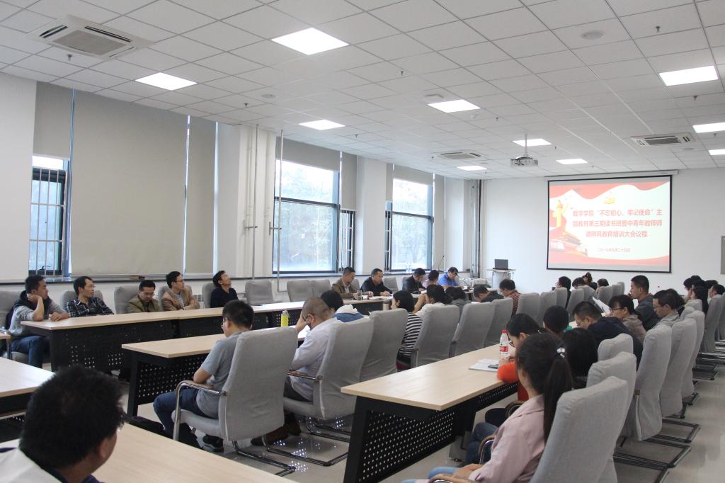 为了进一步贯彻中央思想建党、理论强党的方针政策,着力深化理论武装,全面提升学院党的建设质量,推动学院“不忘初心、牢记使命”主题教育理论学习往深里走、往心里走、往实里走,9月25日下午,yl88858cc永利官网党委在学院会议室举办“不忘初心、牢记使命”主题教育第三期读书班暨中青年教师师德师风教育培训大会,学院党政班子成员、党委委员、各支部书记以及40岁以下中青年教师参加了会议。党委书记李长宏主持大会。