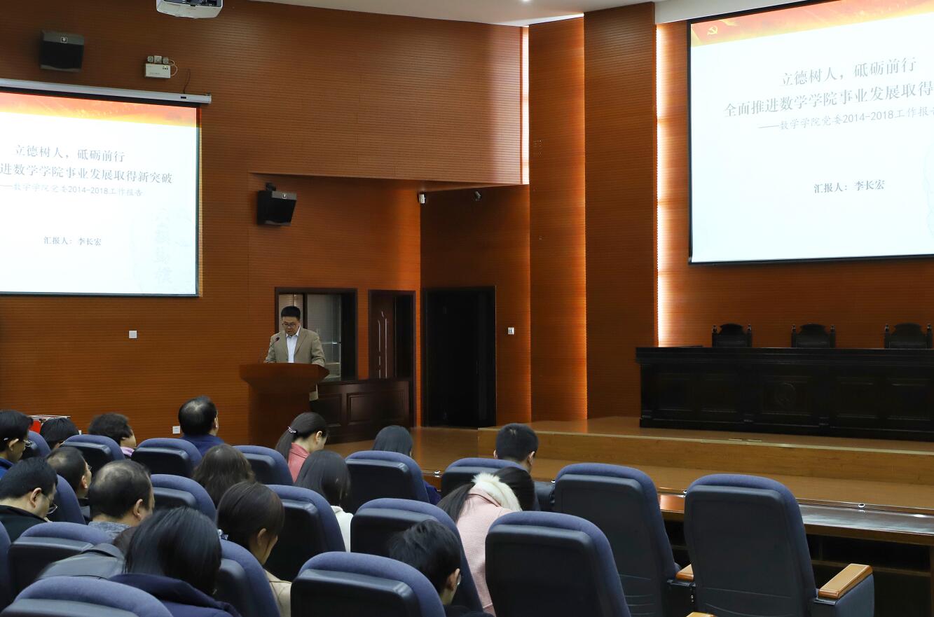 大会在庄严的国歌声中开幕。党委书记李长宏同志作了题为《坚持立德树人,砥砺前行---全面推进yl88858cc永利官网事业发展取得新突破》的工作报告。报告从党委紧抓政治理论学习、加强基层党组织建设、夯实作风建设、加强师德教风建设、提升人才培养质量、服务师生关爱教职工等方面回顾了学院党委从2014年9月成立至今的工作开展完成情况,并提出学院党委下一步的工作设想和任务。