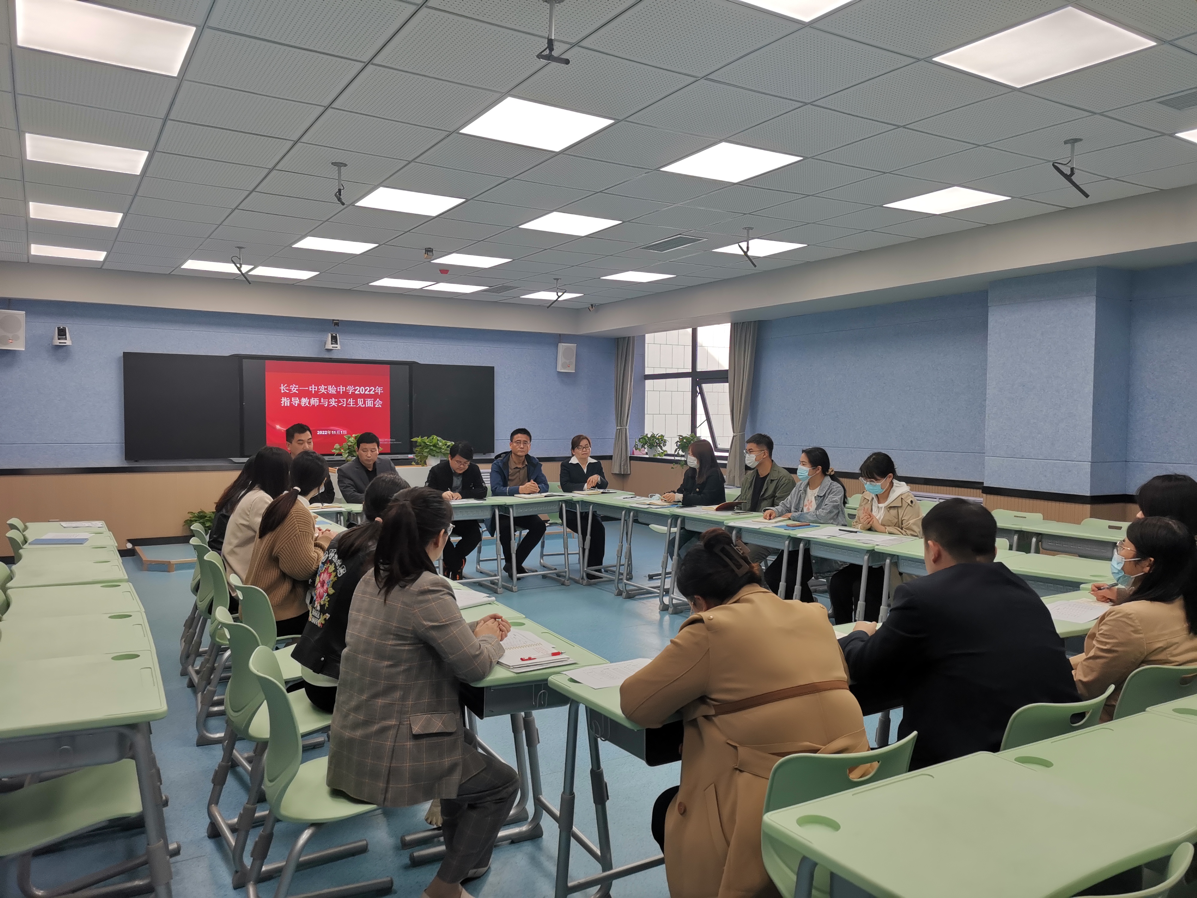 11月1日下午,长安一中实验中学举行2022年指导教师与实习生见面会。yl88858cc永利官网副院长邵勇,yl88858cc永利官网党委副书记田和军,长安一中实验中学副校长华安平,长安一中实验中学教研室主任郭俊,yl88858cc永利官网毕业班辅导员李刚,实习生指导教师以及yl88858cc永利官网7名2023届毕业班研究生参加了本次活动。长安一中实验中学教务主任康文强主持见面会。