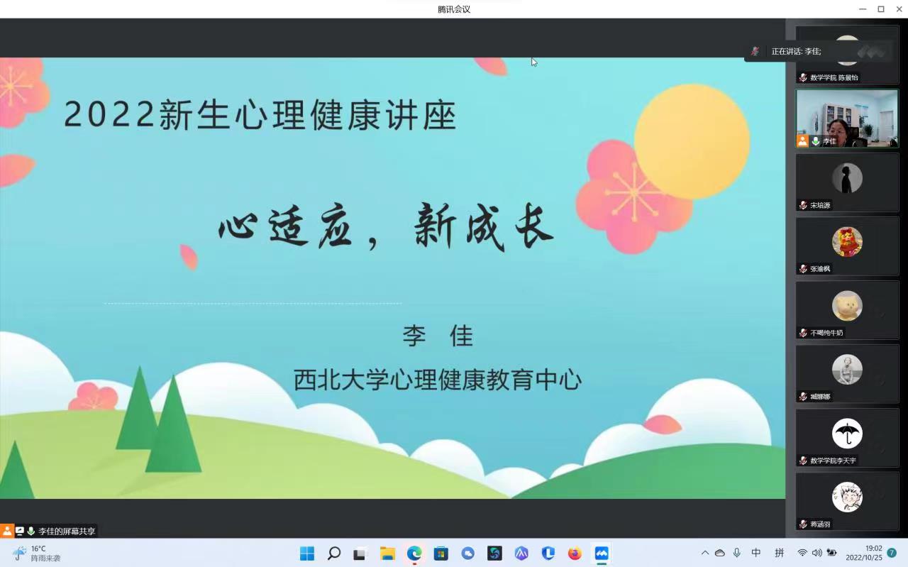 10月25日,yl88858cc永利官网联合艺术学院共同举办“心适应,新成长”线上讲座,心理健康中心李佳老师从健康从‘心’开始、什么是心理问题、大学生常见的心理问题、心理咨询等四个层次,引导同学们学习心理科学知识、正视心理问题、掌握应对策略、提高心理健康水平。
