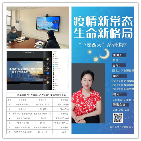 学生居舍学习生活以来,学院始终把“坚定全院1005名学生的战疫信心”当作头等大事攻坚。多次分年级召开疫情防控工作线上动员会暨线上教学教育大会,宣传新冠病毒、出血热等传染病防控知识,规范线上秩序。同时,通过设置学生权益线上信箱、深入楼宇宿舍送温暖、举办专家防疫心理健康专题讲座、开展“行在宿舍,心在云端”文体卫系列活动、畅通心理咨询通道等方式,引导学生信心胜疫。