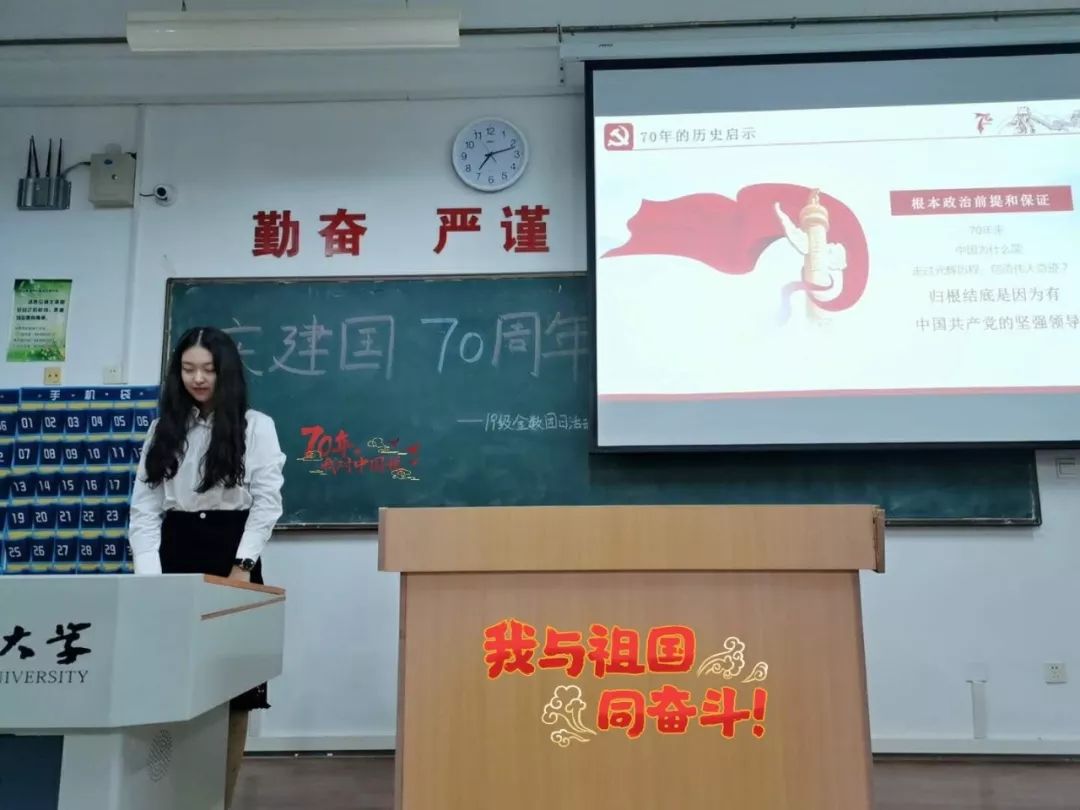 为庆祝新中国成立70周年,大力弘扬中华民族精神,鼓励青年团员勇于肩负起时代赋予重任,提高自身综合素质,在学习生活中志存高远、脚踏实地。近期,在yl88858cc永利官网团委的统一部署下,2019级本科生各团支部开展了以“锦绣70年