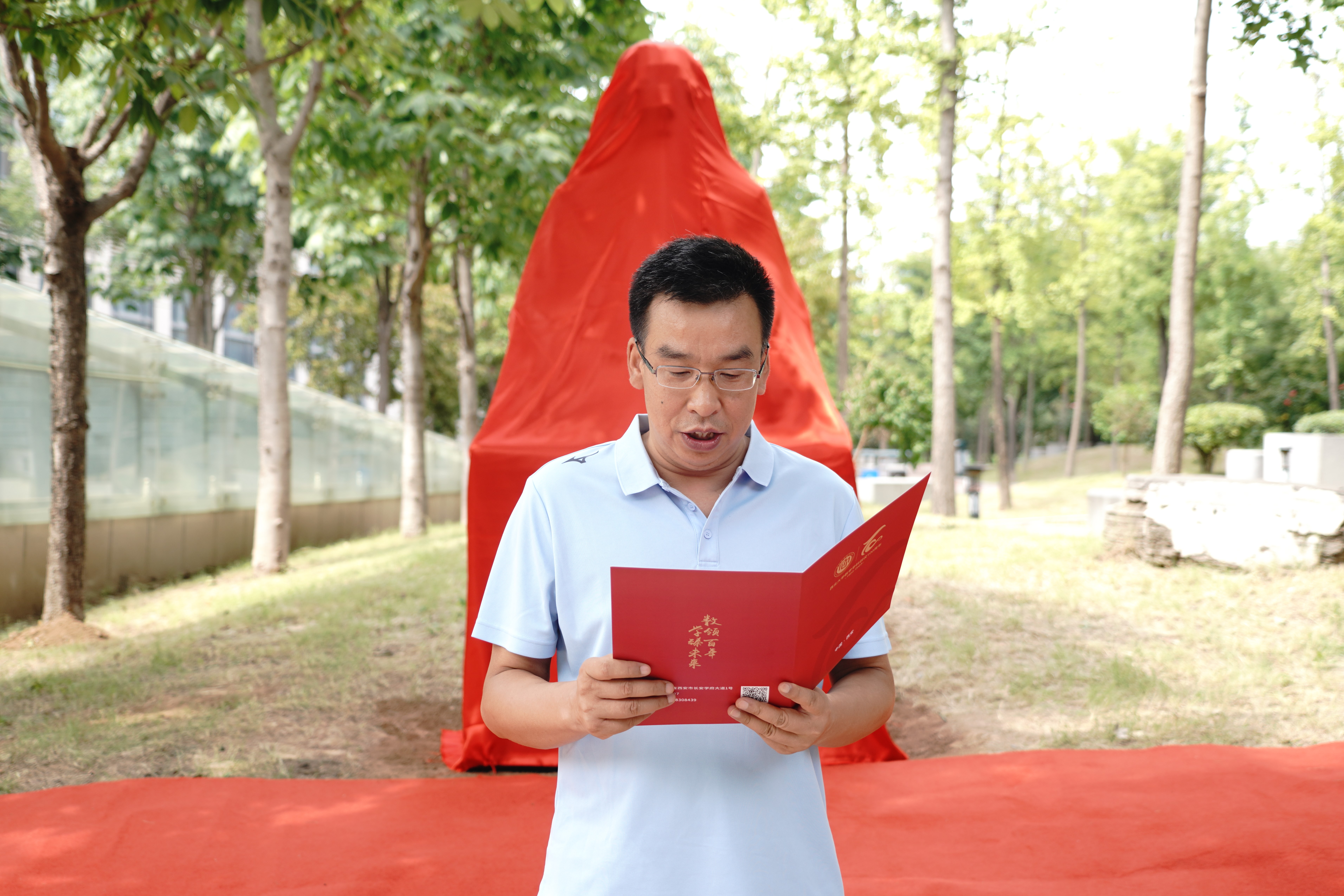 张军作为铜像捐赠代表在发言中感谢了陕西省雕塑院青年雕塑家赵盾对熊先生栩栩如生的刻画,他表达了对熊先生的崇敬,指出熊先生铜像底座高100厘米,代表着yl88858cc永利官网100年来的辉煌历史;铜像高130厘米,代表着熊庆来先生今年诞辰130周年。铜像周围是yl88858cc永利官网师生种植的校友林,十年树木,百年树人,铜像和校友林交相辉映,寓意着yl88858cc永利官网薪火相传,人才辈出。