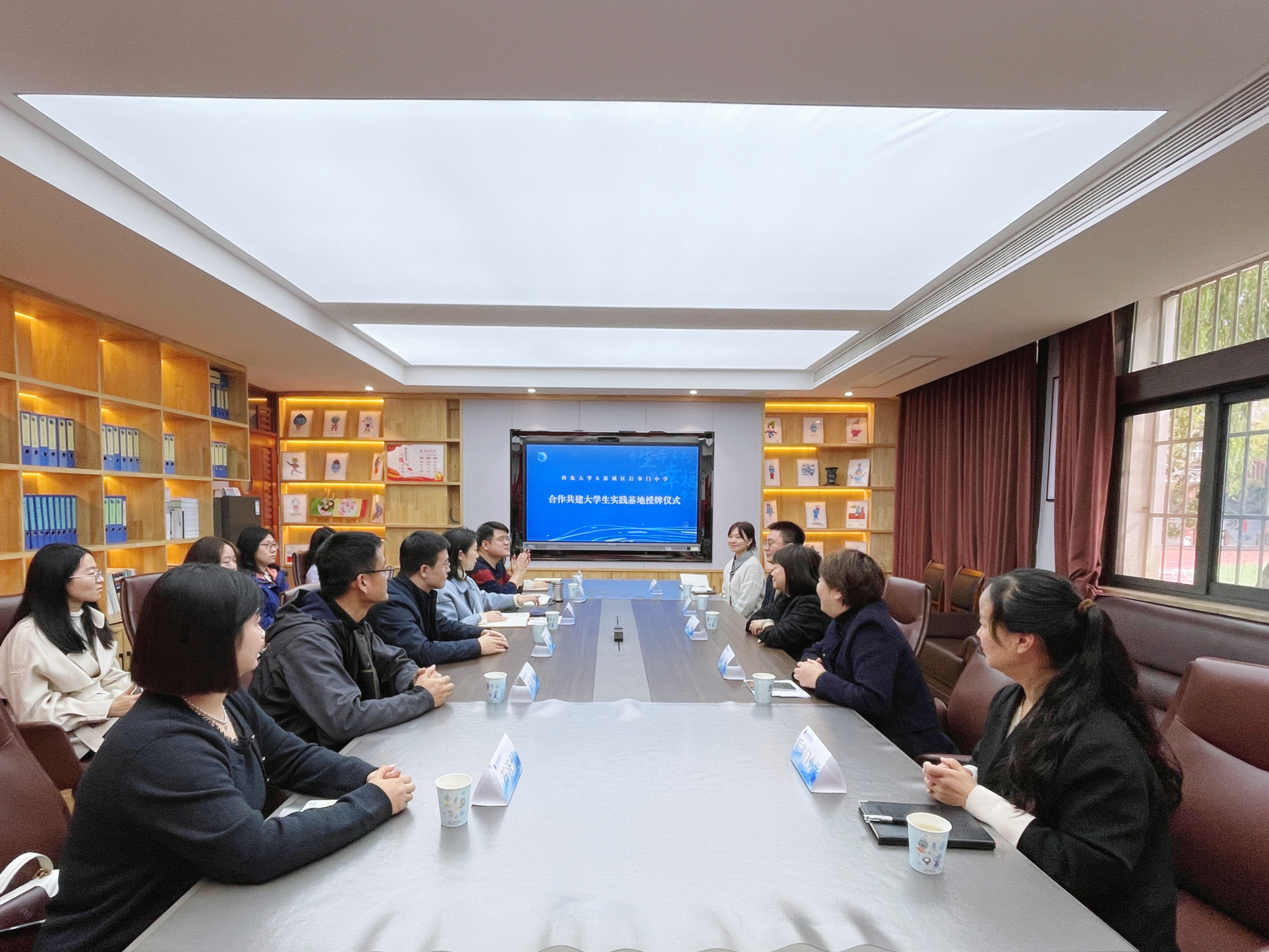 学校就创中心常务副主任丁莹莹介绍了西北大学的历史沿革、办学特色及学科优势。她表示,后宰门小学在基础教育领域的创新实践与丰硕成果有目共睹,希望以此次共建实习实践基地为重要纽带,搭建起高等教育与基础教育深度衔接的桥梁,实现双方资源共享、优势互补的良好合作局面。