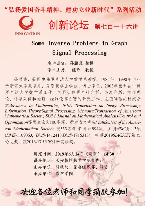 西北大学创新论坛第七百一十六讲:Some Inverse Problems in Graph Signal Processing