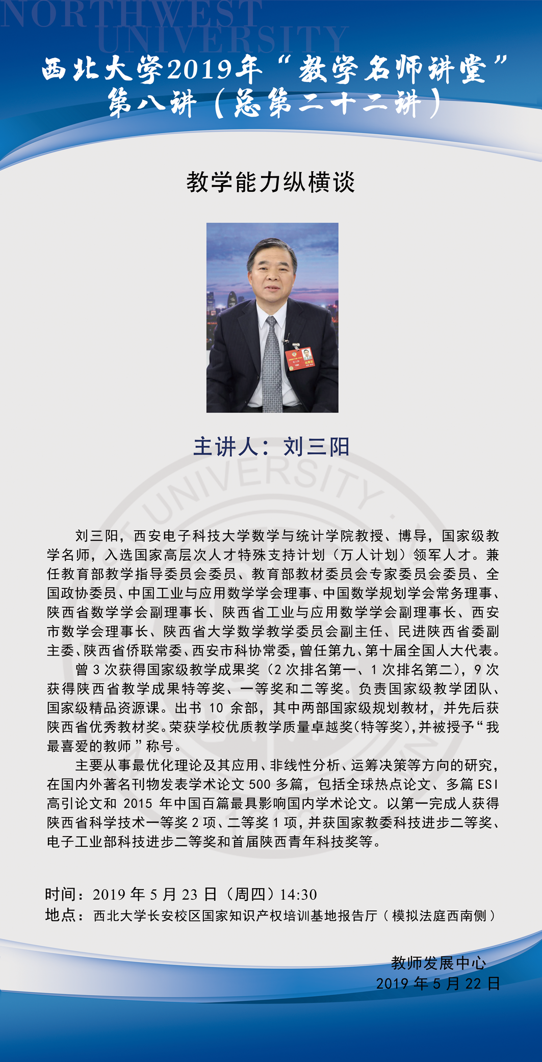 西北大学2019年“教学名师讲堂”第八讲:教学能力纵横谈