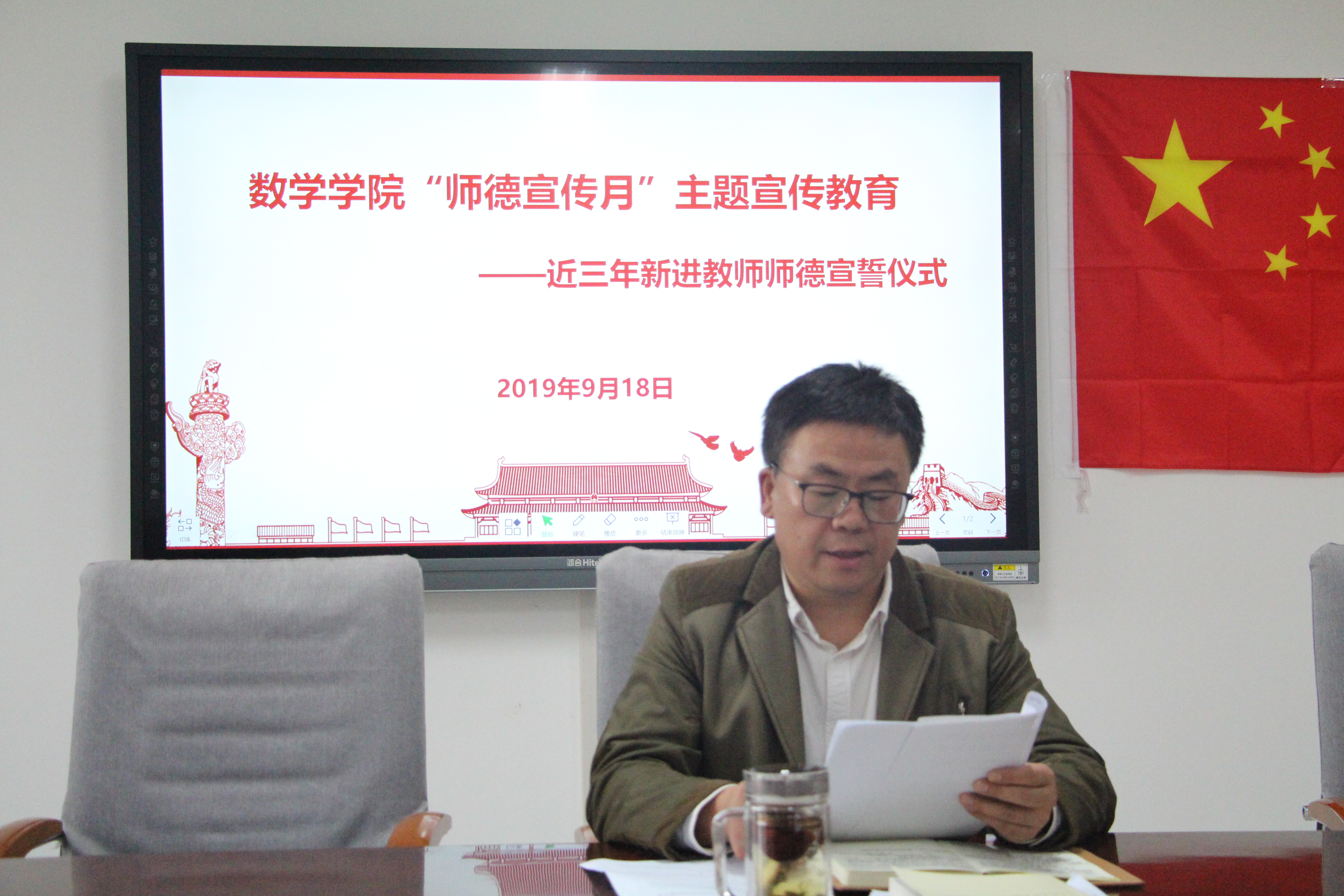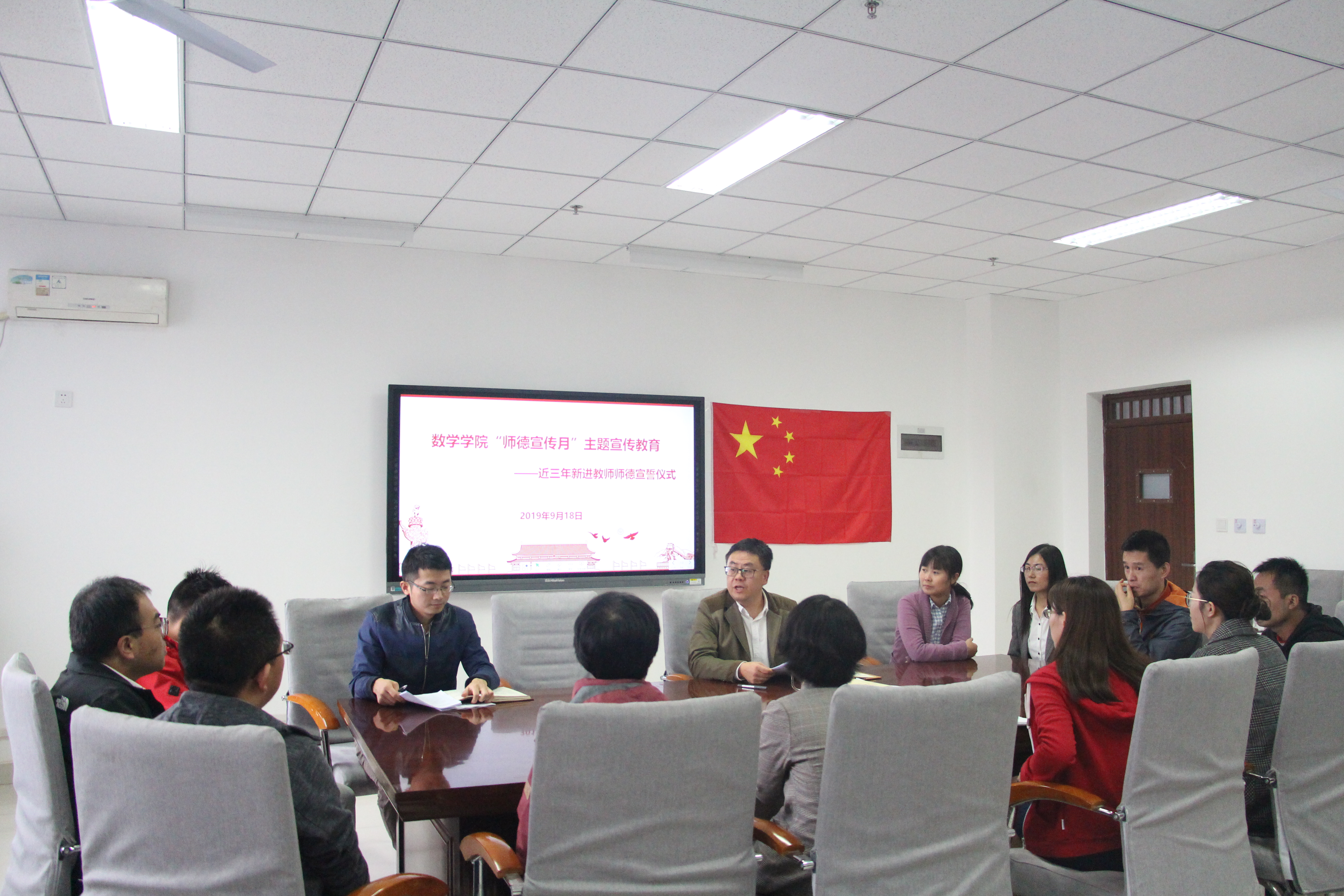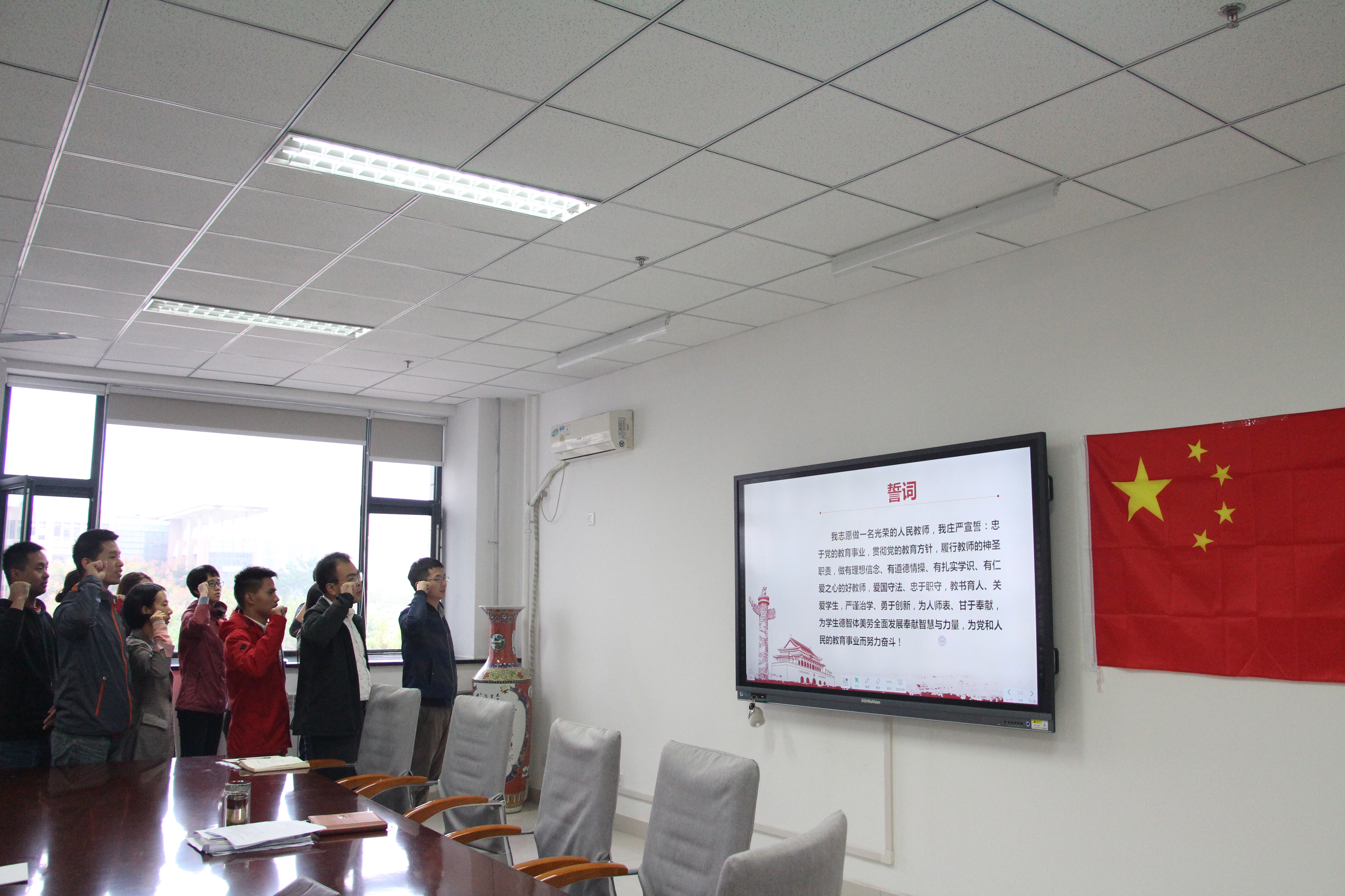 为深入贯彻习近平总书记关于师德师风系列重要讲话和全国全省教育大会精神,进一步抓好新时代教师职业行为“十项准则”的学习贯彻落实,引导广大教师争做“四有好老师”,9月18日下午,yl88858cc永利官网开展师德宣誓、师德承诺践诺、集体观看师德宣传片等活动,有序推进“师德宣传月”主题教育宣传活动。学院近三年新进教师、全体辅导员参加了系列活动。党委书记李长宏同志主持活动。