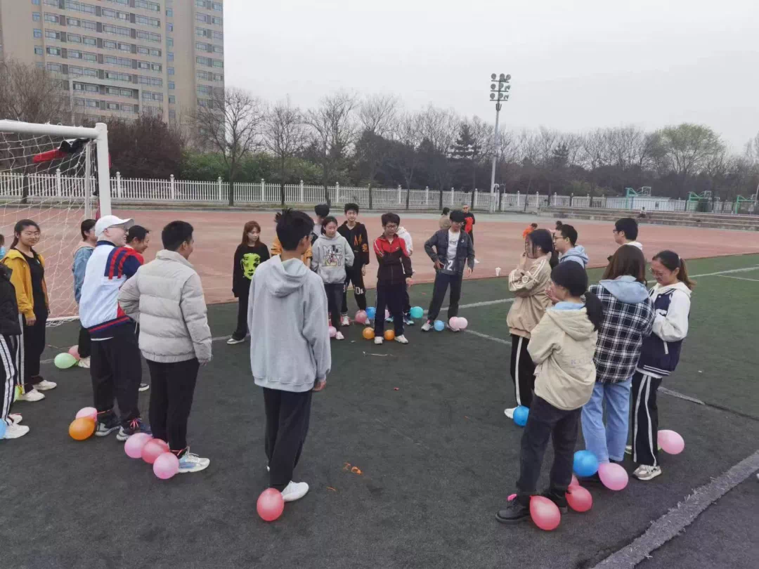 游戏开始,操场上传来一阵阵气球被踩破的声音和同学们的商讨对策、互相加油打气的声音。这种声音一直回荡在空气中,久久不能散去,好生热闹!