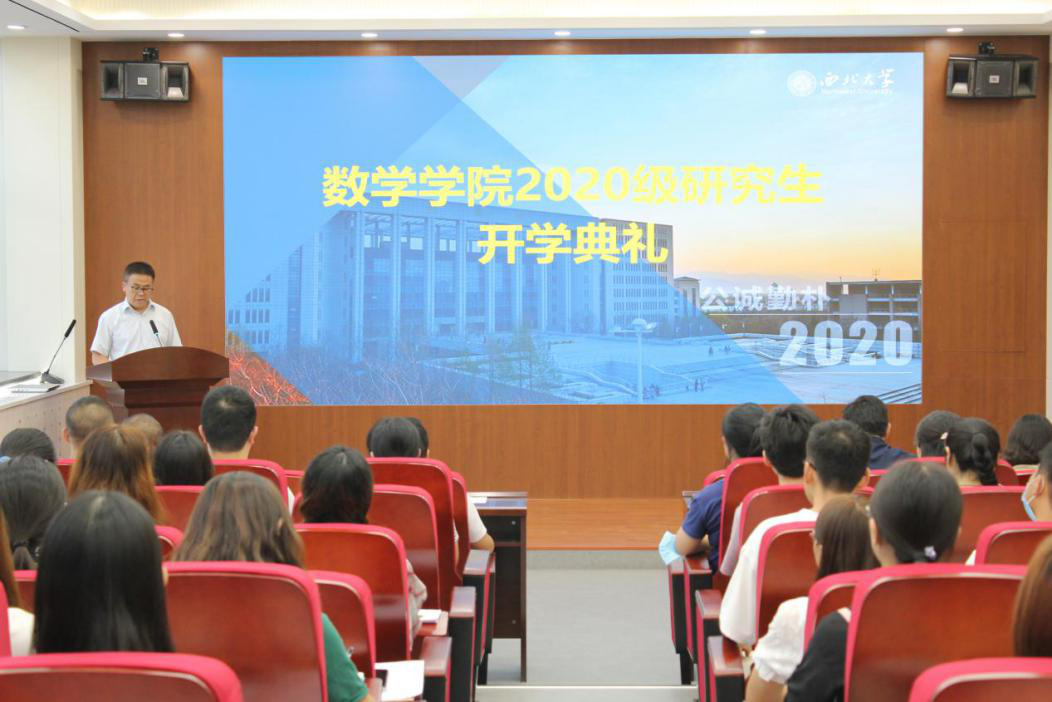研究生学位秘书王冬岭副教授系统介绍了研究生奖学金评定、毕业基本要求、学术诚信等相关学术规章制度。辅导员李建璋老师主要从日常管理、校纪校规 、疫情防控、培养良好道德品质、遵纪守法等多个方面,给大家上了“开学第一课”。历智明副教授从班主任角度对研究生提出了建议:要心地善良、敬畏自然、 追求真理、心胸开阔、志向高远,尽快适应大学生到研究生的角色转换。2019级统计学硕士,西北大学第21届研究生支教团的成员张欣悦,作为新生代表发言。