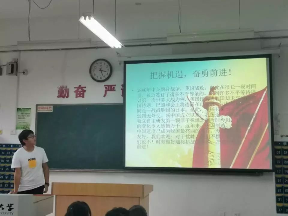 接下来,张熙斌同学从中国近代相关历史及发展进程讲起,谈到我们中国欢迎友好、不惧挑战、不畏霸凌,我们时刻做好迎接挑战的准备,把握机遇,奋勇向前!