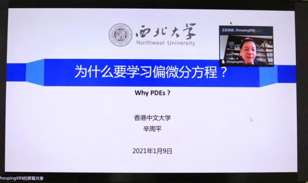 颁奖典礼结束后,辛周平教授还为同学们作了一场报告“为什么要学偏微分方程”。辛教授从偏微分方程背景介绍,偏微分方程学科的战略地位,偏微分方程的发展规律和特点以及如何学习偏微分方程这四个方面向我们介绍了偏微分方程。同学们听了这场讲座,均受益匪浅。